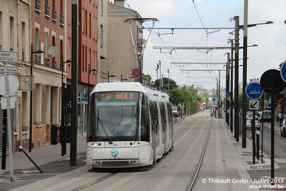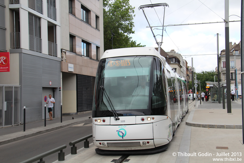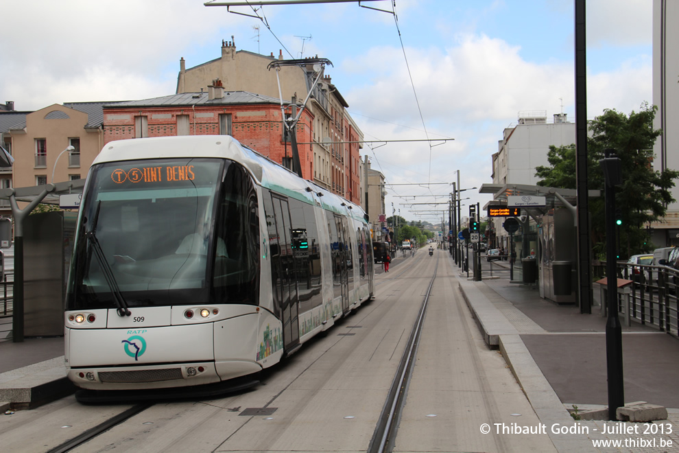 Tram 509 sur la ligne T5 (RATP) à Saint-Denis